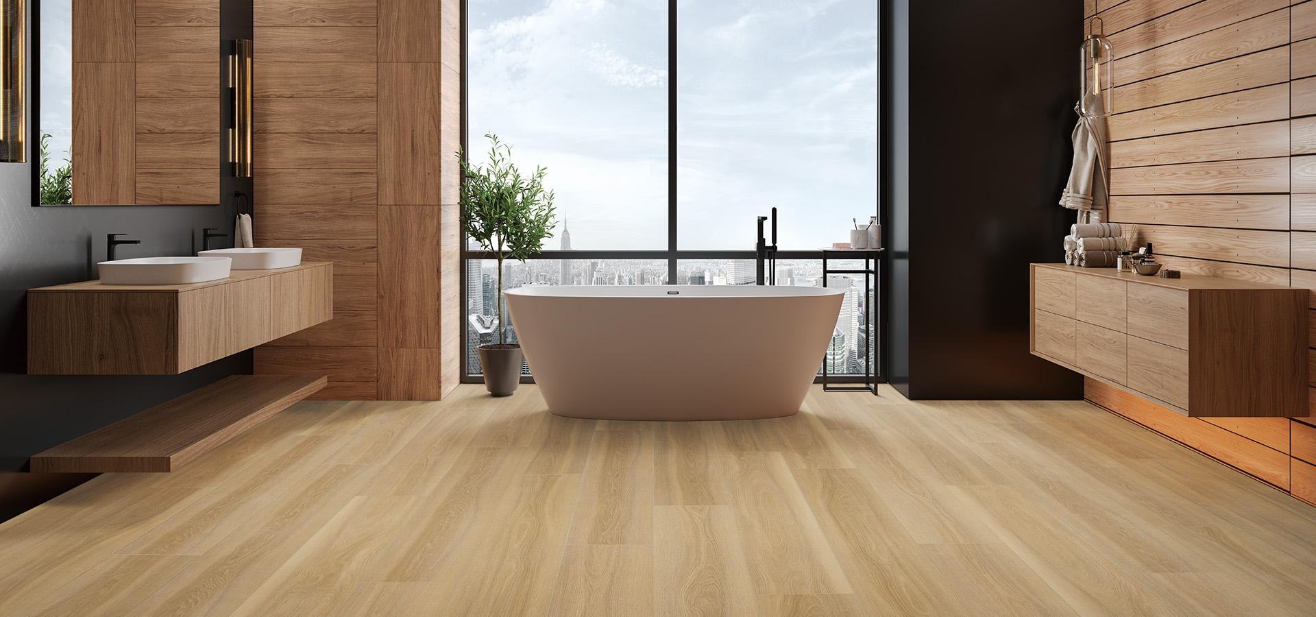 Ultra-clear French Oak visual capturing dynamic grain patterns and color variations only seen on real wood; further heightened by the registered embossing technique that follows the swirling grain and brings real-wood texture to luxury vinyl