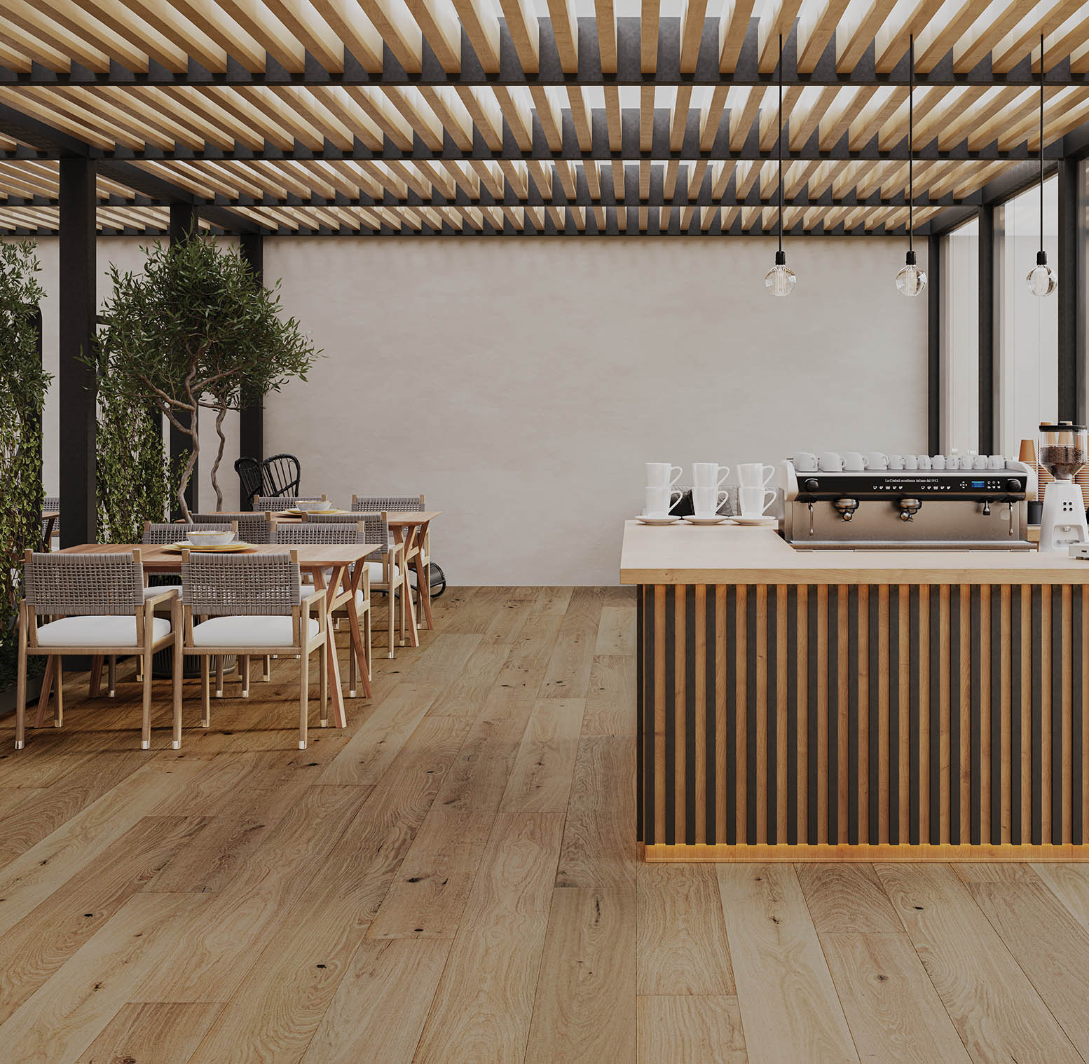 Engineered 2mm sliced veneer and sealed with 8 coats of super low gloss urethane finish for enhanced resistance and durability.